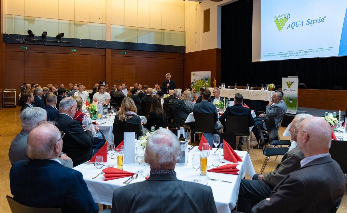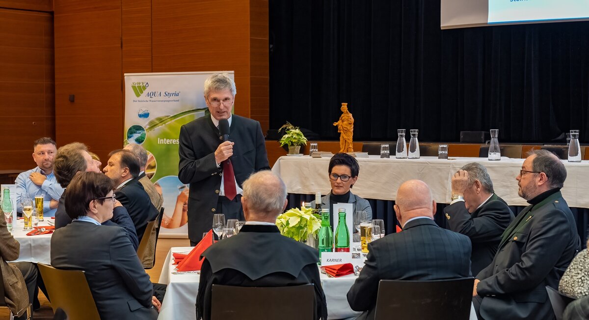 Außer den Mitgliedern des Verbandes konnte Obmann Manfred Kanatschnig zahlreiche Ehrengäste wie Vertreter der Wissenschaft und Verwaltung sowie ehemalige Vorstandsmitglieder begrüßen. Am Ende eines Jahres sei Dank dafür gesagt, dass das Jahr 2022 für die Wasserversorger trotz großer Herausforderungen (Situation am Energiesektor, Klimawandel, genereller Fachkräftemangel usw.) gut verlaufen ist und dass die Trinkwasserversorgung in der Steiermark im Verantwortungsbereich des Steirischen Wasserversorgungsverbandes mit ca. 960.000 Wasserbeziehern immer gesichert war.