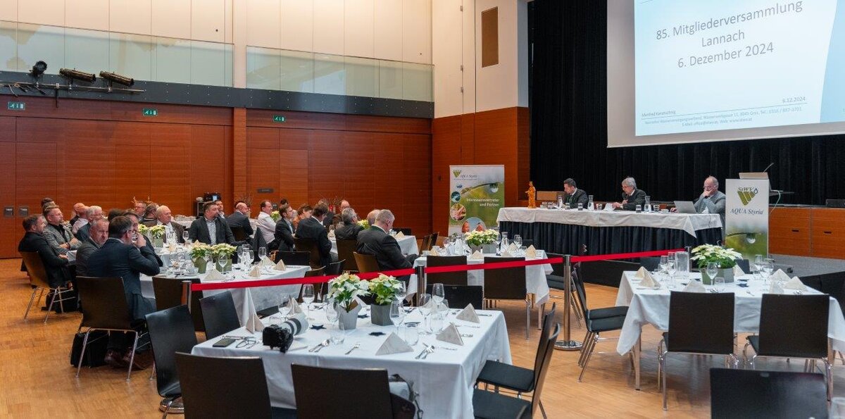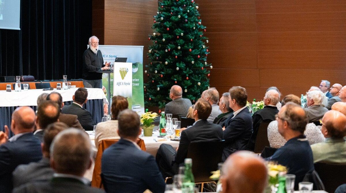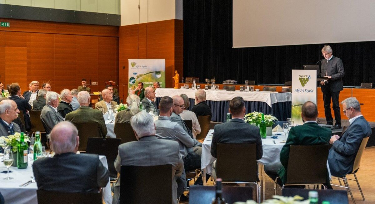 Neben den Mitgliedern des Verbandes konnte Obmann Dipl.-Ing. Manfred Kanatschnig zahlreiche Ehrengäste aus Politik, Wissenschaft und Verwaltung sowie ehemalige Obleute und Vorstandsmitglieder begrüßen. Am Ende des Jahres sei Dank dafür gesagt, dass die Trinkwasserversorgung in der Steiermark im Verantwortungsbereich des Steirischen Wasserversorgungsverbandes mit ca. 960.000 Wasserbeziehern im Wesentlichen gesichert war. Das Jahr 2024 hatte den Wasserversorgern wiederum große Herausforderungen durch extreme Wettersituationen bereitet.