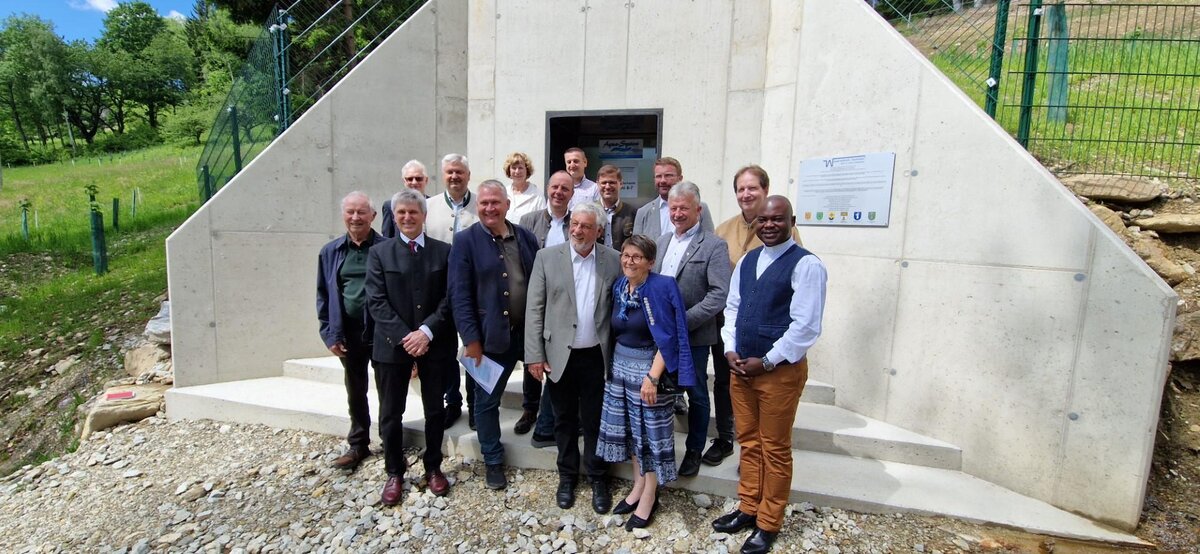 STUBENBERG. Freude bei den Verantwortlichen des Wasserverbandes Feistritztal. Der Quellsammelschacht „Grubtoni 6-7“ in Stubenberg wurde offiziell eröffnet, gesegnet und damit seiner Bestimmung übergeben. Verbandsobmann Bgm. Alexander Allmer (Stubenberg) begrüßte dazu neben den Vorstandsmitgliedern auch NR Christoph Stark, LAbg. Hubert Lang, Vertreter der Landesregierung und der am Bau beteiligten Firmen.